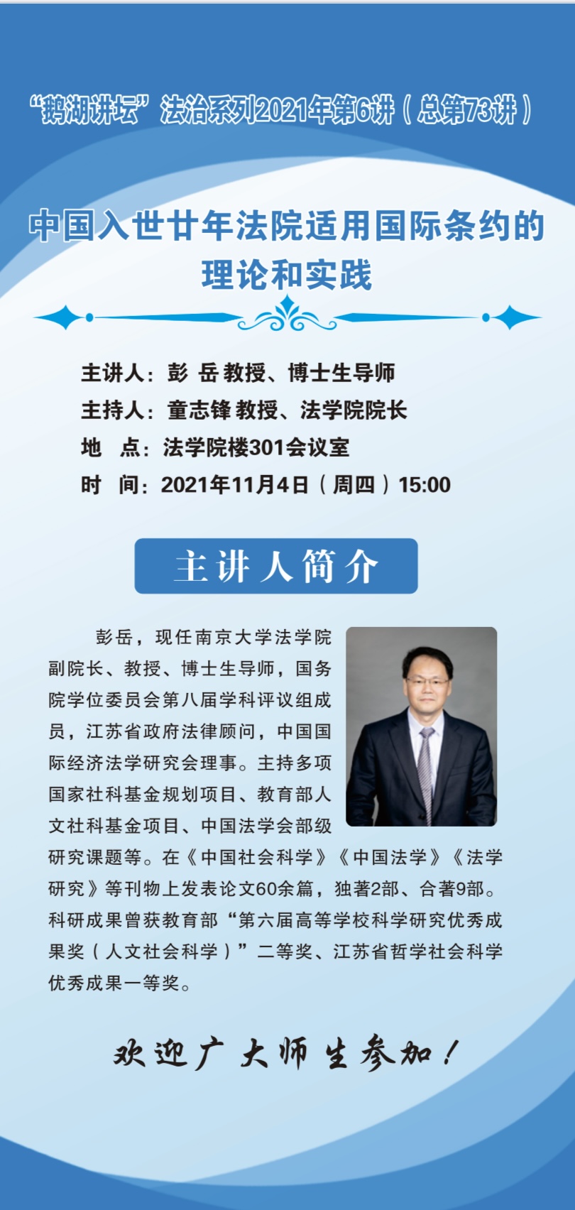 “鹅湖讲坛”法治系列2021年第6讲(总第73讲)南京大学tyc7111cc太阳成集团彭岳教授