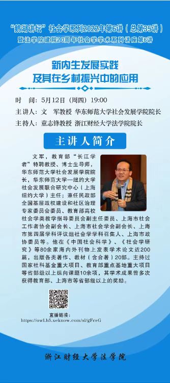 “鹅湖讲坛”社会学系列2022年第6讲暨tyc7111cc太阳成集团建院20周年社会学学术系列讲座第6讲华东师范大学文军教授