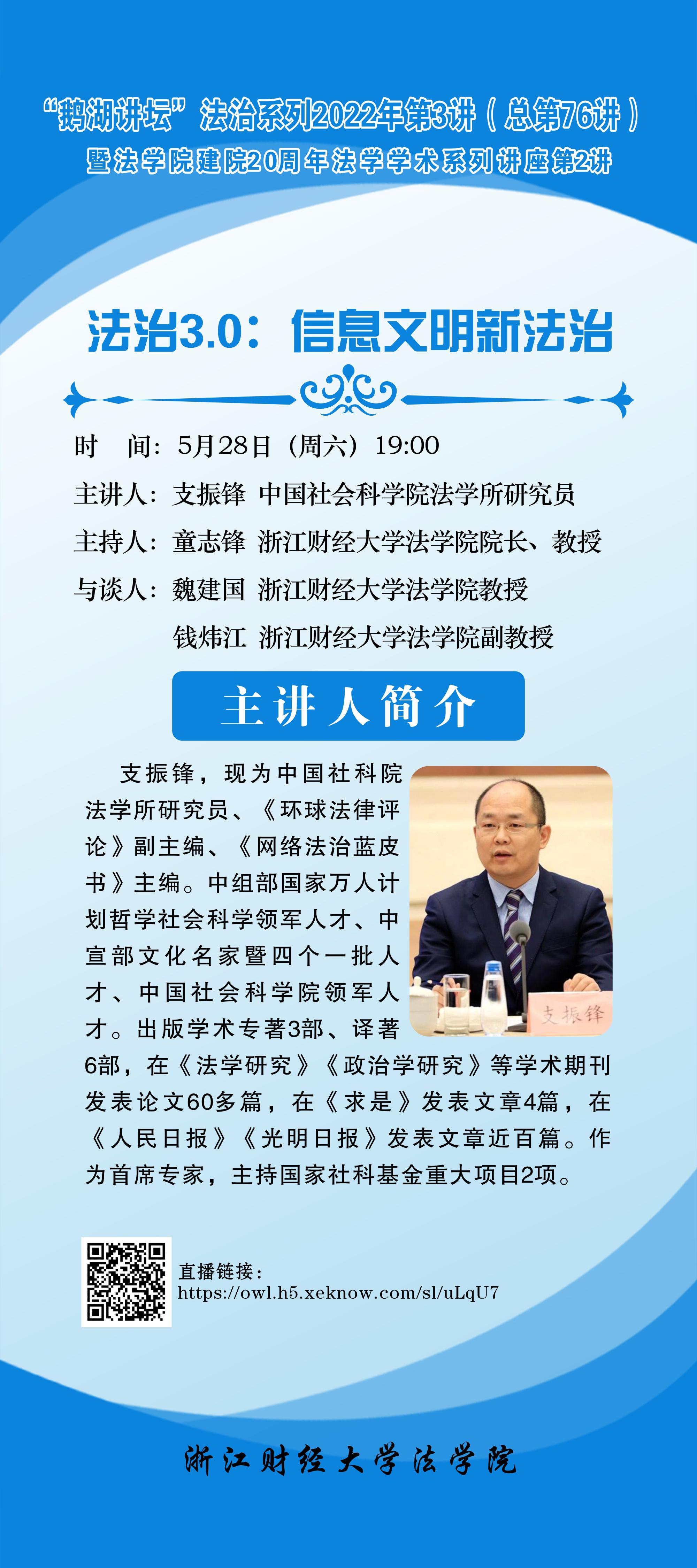 “鹅湖讲坛”法学系列2022年第3讲暨tyc7111cc太阳成集团建院20周年法学学术系列讲座第2讲中国社会科学院支振锋研究员