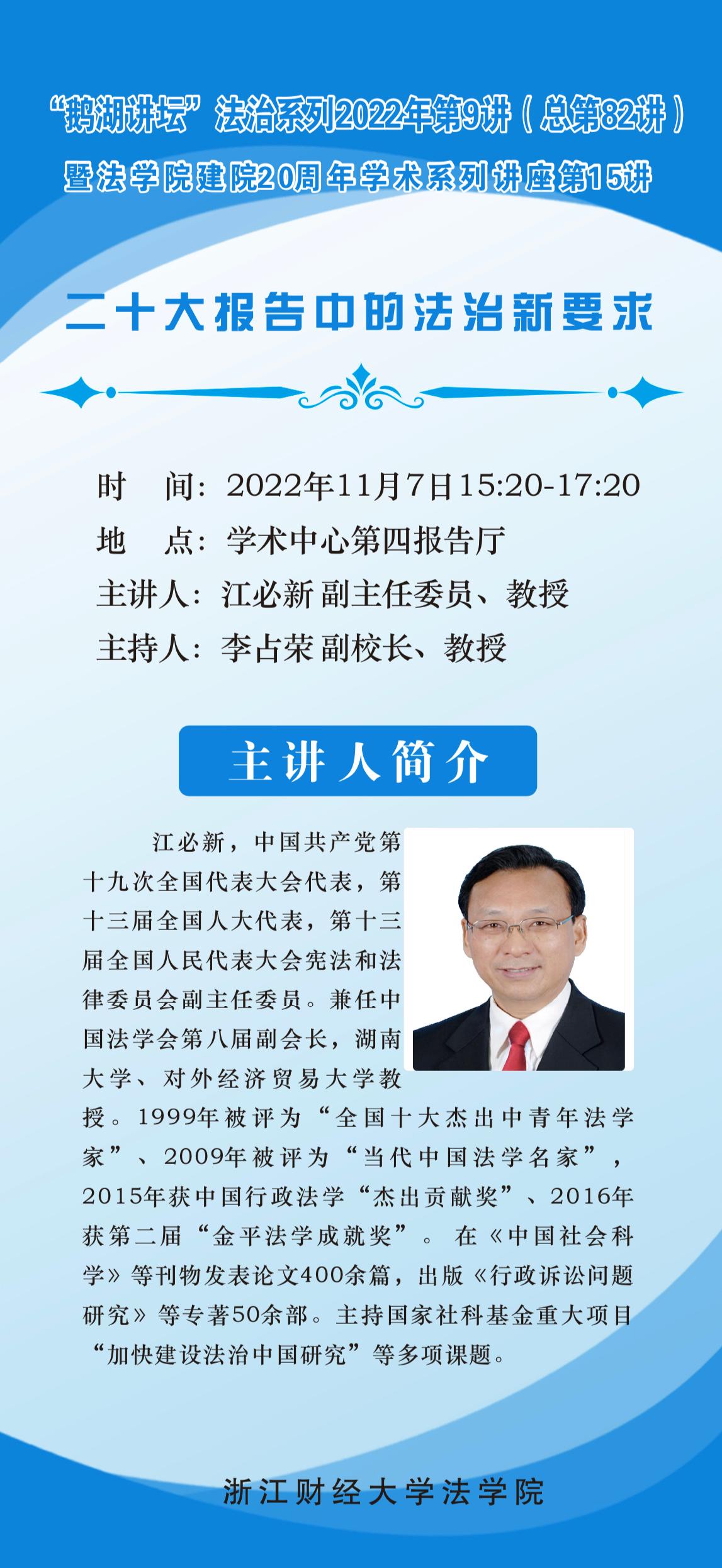 “鹅湖讲坛”2022年法治系列第9讲暨tyc7111cc太阳成集团建院20周年学术系列讲座第15讲江必新教授