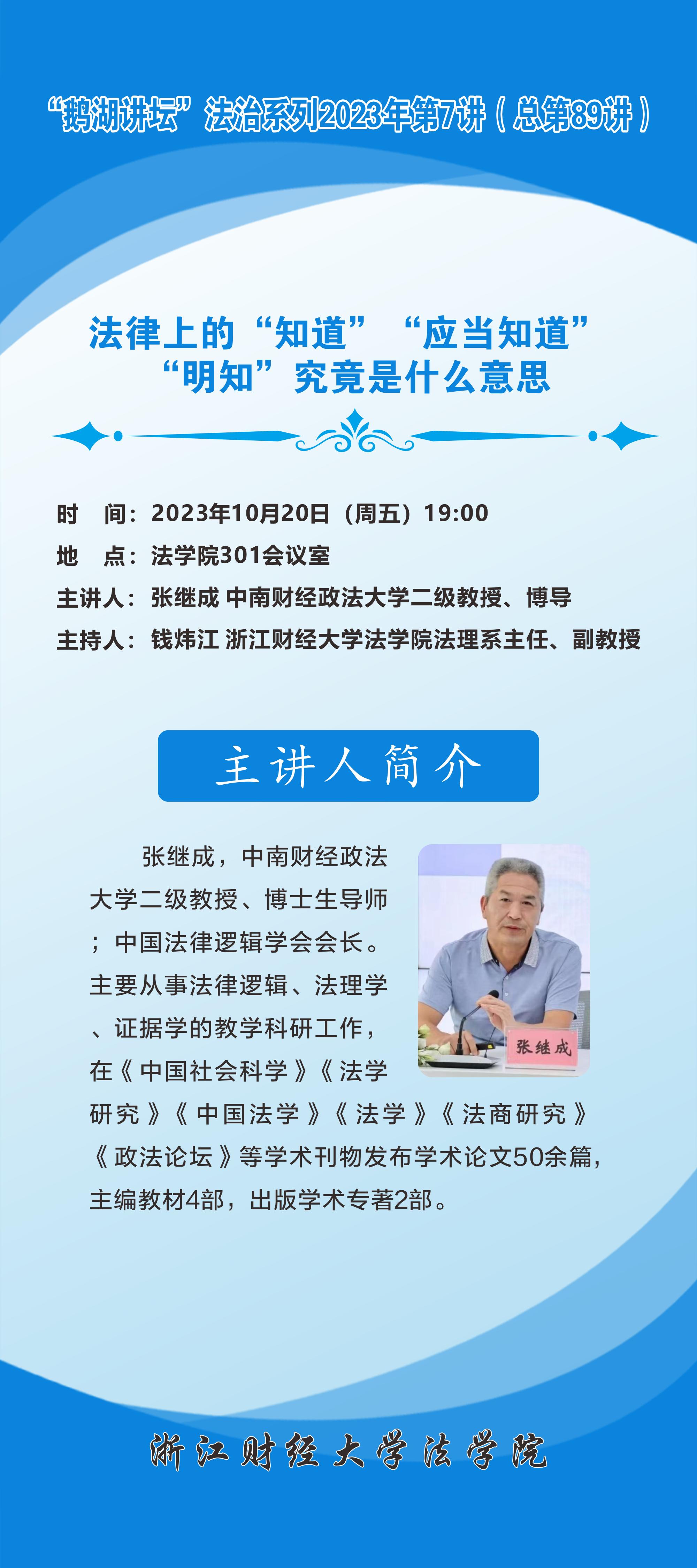 “鹅湖讲坛”法治系列2023年第7讲(总第89讲)中南财经政法大学张继成教授
