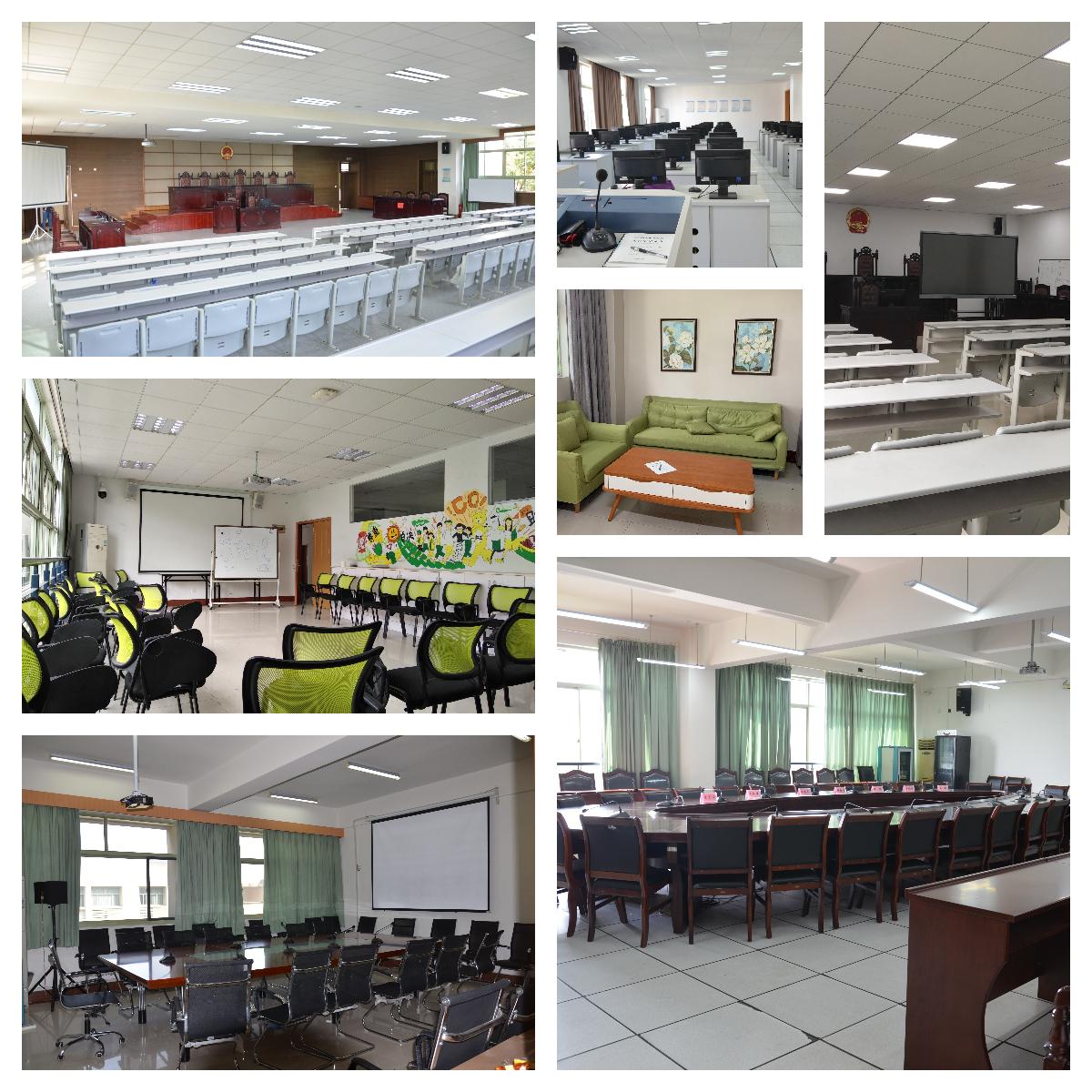 法学实验室由大模拟法庭(4-201)、小模拟法庭(4-203)、案例分析室(4-301)法律援助工作站(4-304)、法律技能综合训练中心(4-306)和法律职业非诉业务实验室(4-510)组成。社会工作实验室分为小组工作室(4-300)、个案工作室(4-201A)和乐心实验工作室。法律实验中心位于四号学院楼,法律实验中心实验室面积为1982平方米,设备资产为130万元。每年开设实验课程12门以上,实验人数达7000余人次,较好地满足了学院人才培养、科学研究和社会服务等工作的需要。